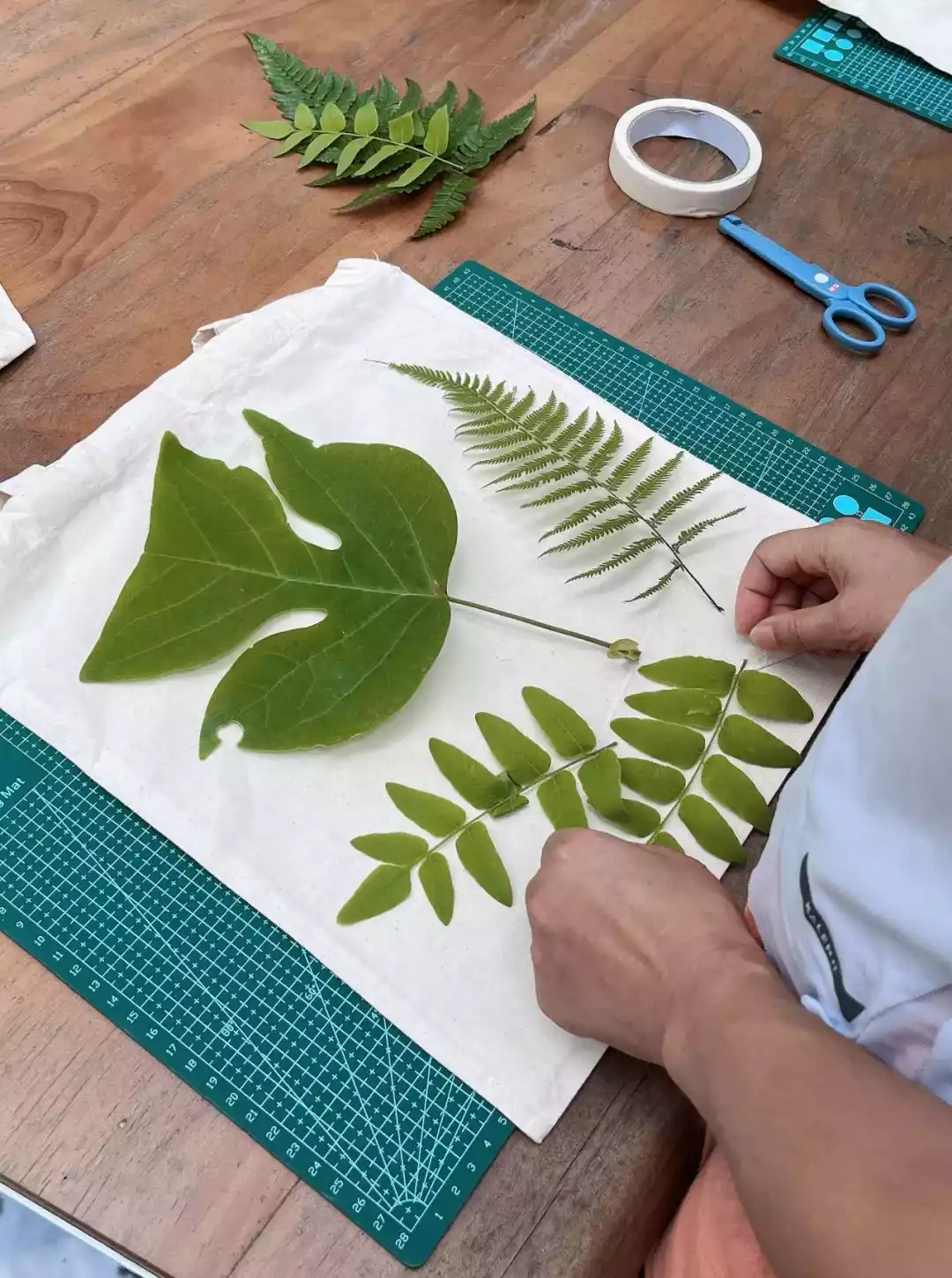 Leaving plant imprints on cotton cloth and giving plants another life is a summer gift from nature.