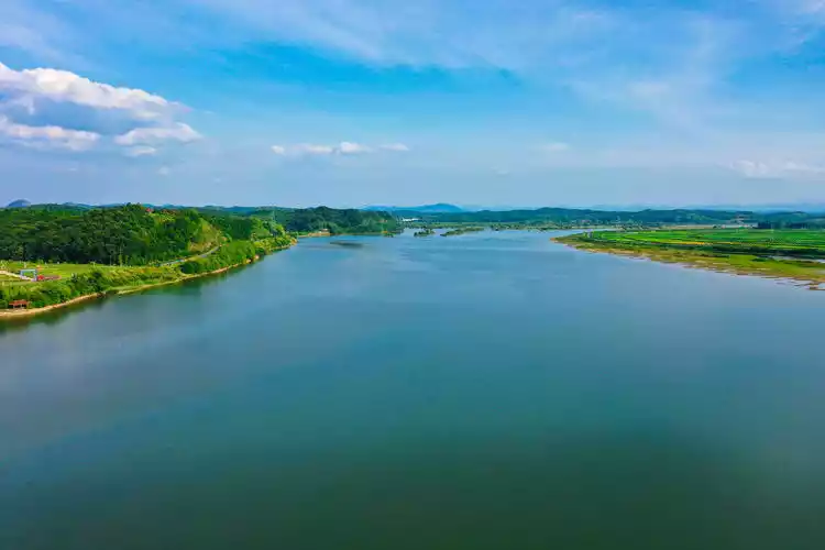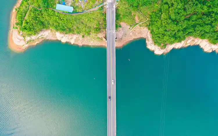 Located in Huoshan County, Lu'an City, the Fuziling Reservoir, 17 kilometers west of the city, is known as "New China's First Dam." Unlike typical dams, its most distinctive feature is its arched design. Its imposing appearance and crystal-clear water create a sapphire-like appearance when viewed from the air.