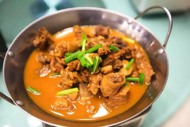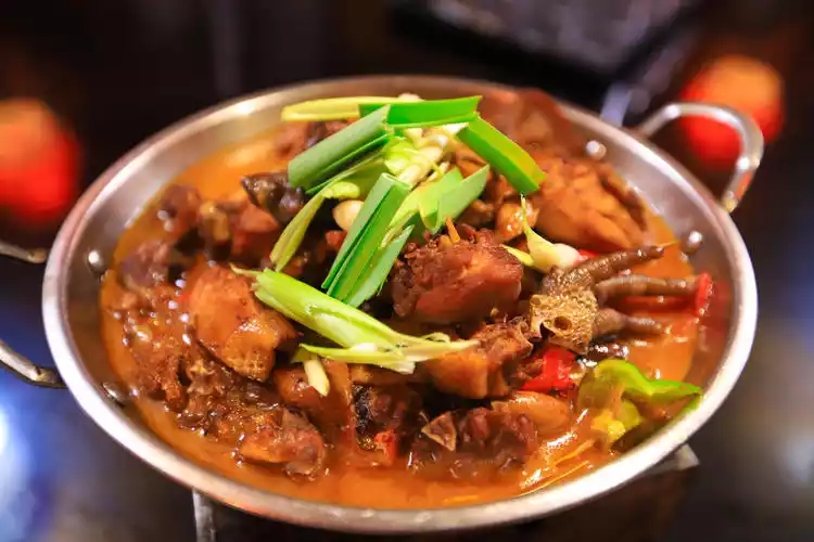 The most common dish here is hanging pot cuisine, which is available in every restaurant. Lu'an hanging pot cuisine is a specialty of Lu'an, Anhui Province, with Tiantangzhai's hanging pot being the most famous. Its defining characteristic is its "one pot, a hundred flavors." This means all the half-cooked ingredients are placed in a hanging pot and served while being heated. As you eat, you can still smell the aroma of the simmering ingredients. This cuisine is known for its strong flavors, being heavy on oil, spicy, and possibly a bit salty.