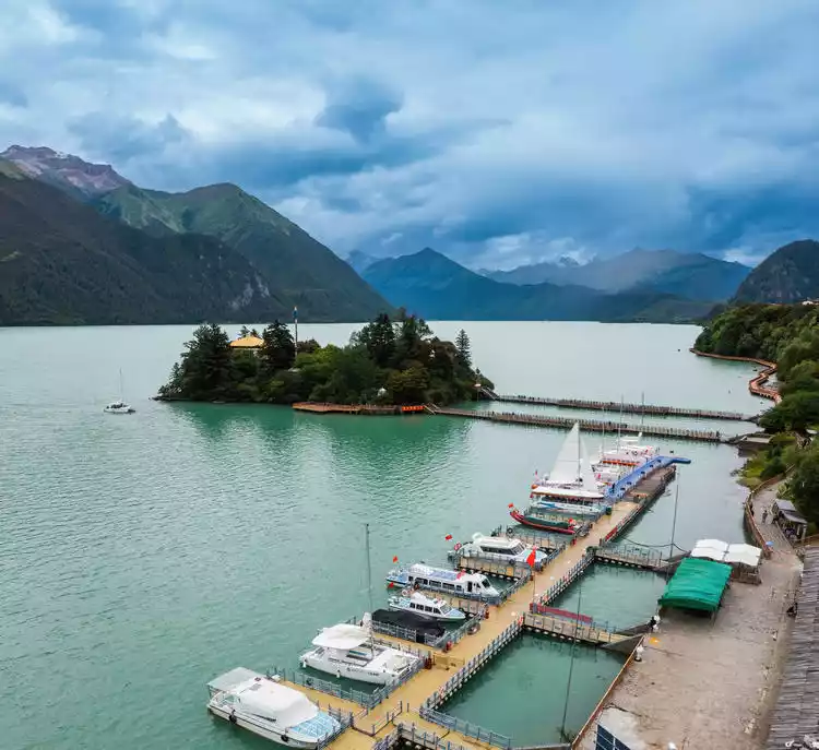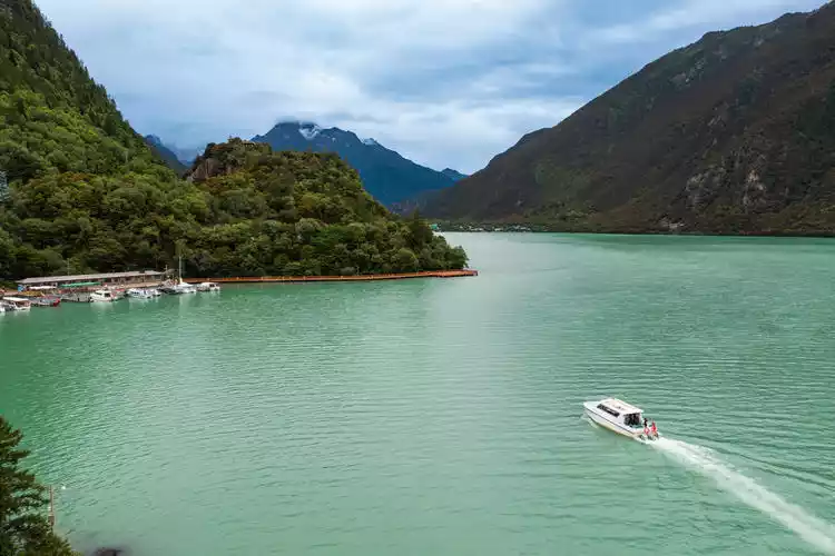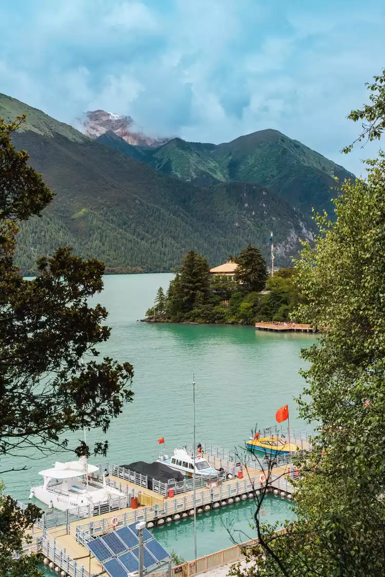Take a cruise ship, floating on the lake, the breeze is blowing gently, the lake surface is turquoise, the vast snow-capped mountains are in front of you, and both sides are lush green. For a moment, you even forget that you are deep in the plateau and think you have come to the misty Jiangnan.