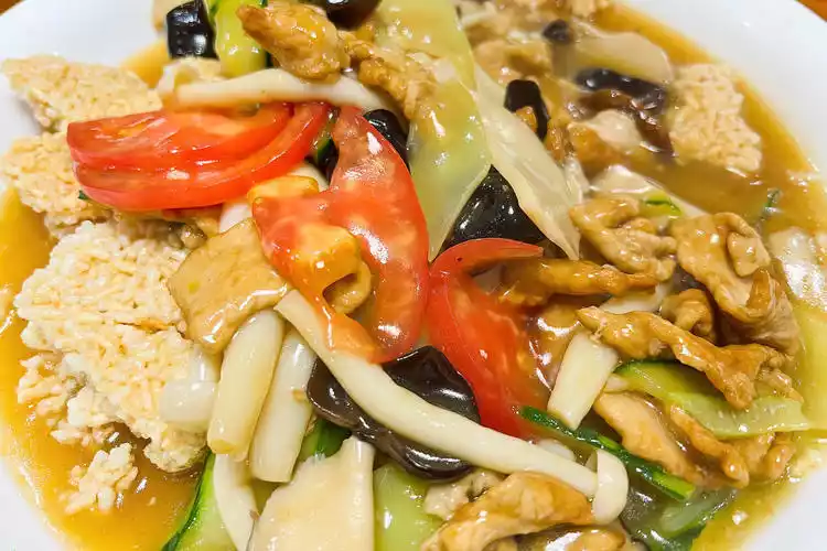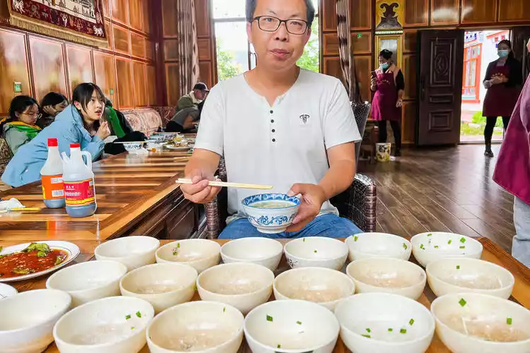 Gaga noodles is a specialty snack from the Yunnan-Tibet region. A large bowl is cooked each time and placed in small bowls. Each small bowl only holds one mouthful, and the waiter will add more food in batches. After you finish a mouthful, the waiter will add a little more, and you can finish a bowl after each mouthful. It is cooked with minced meat and is extremely delicious until you are full.