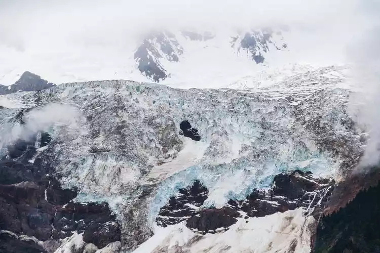 When the weather is fine, you can see the mountain flowers blooming around the glacier and the lush forest dancing like silver snakes.