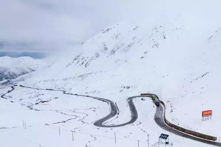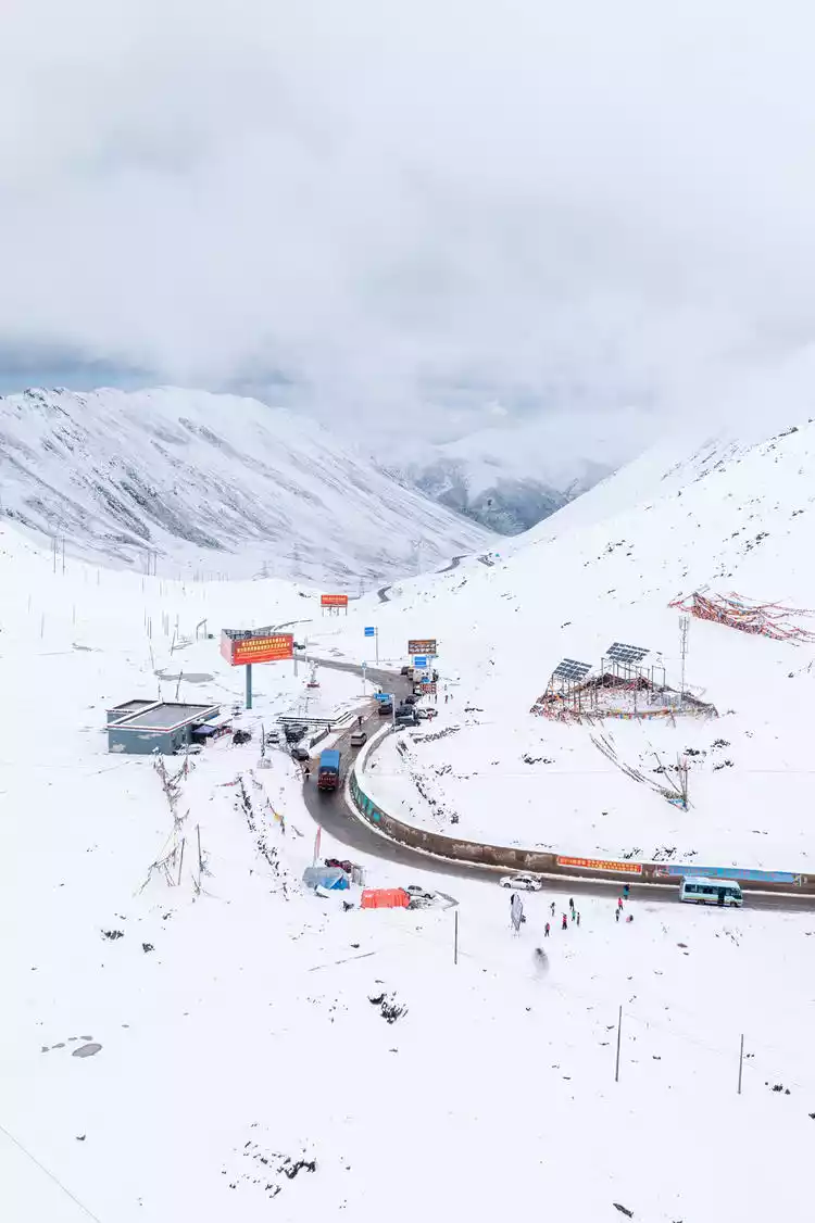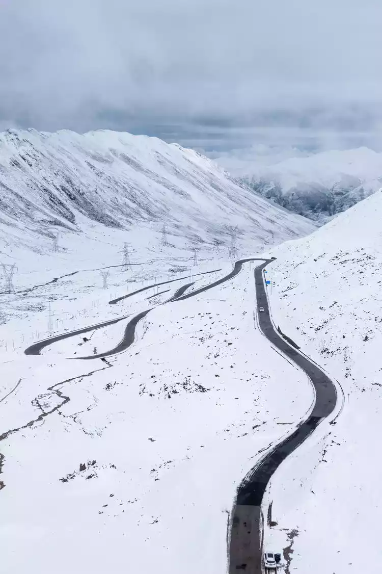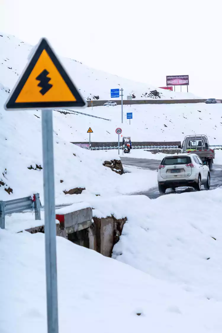 Our itinerary today is to depart from Zuogong County, Qamdo City, cross the Dongda Mountain Pass, and arrive at Gola Village to see the ancient salt fields of Qamdo Salt Wells. As we approach the Dongda Mountain Pass, the snow on the mountain becomes increasingly thick. Last night's rain below the mountain melted into falling snow on the mountain, turning summer into winter in a split second. It's truly awe-inspiring and truly remarkable. Perhaps Dongda Mountain itself has something to say about this: