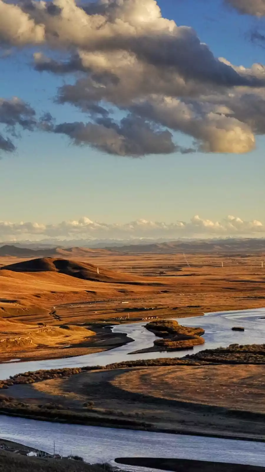 If you ask me where to see the most magnificent sunset, it must be at the First Bend of the Nine Bends of the Yellow River. The Yellow River rushes here from afar, with majestic spirit and calm demeanor, leaving a winding "S" shape in the heart of Ruoergai. This is the majestic First Bend of the Nine Bends of the Yellow River.