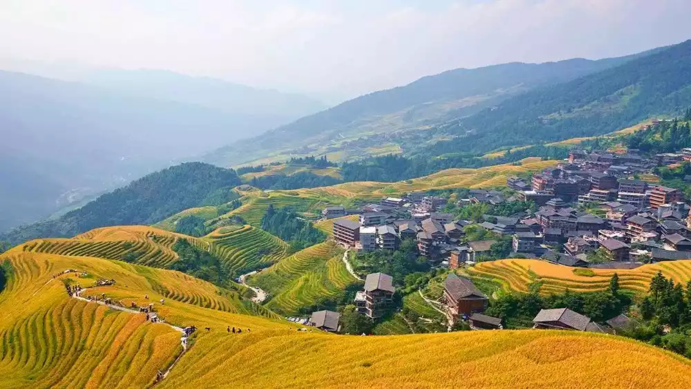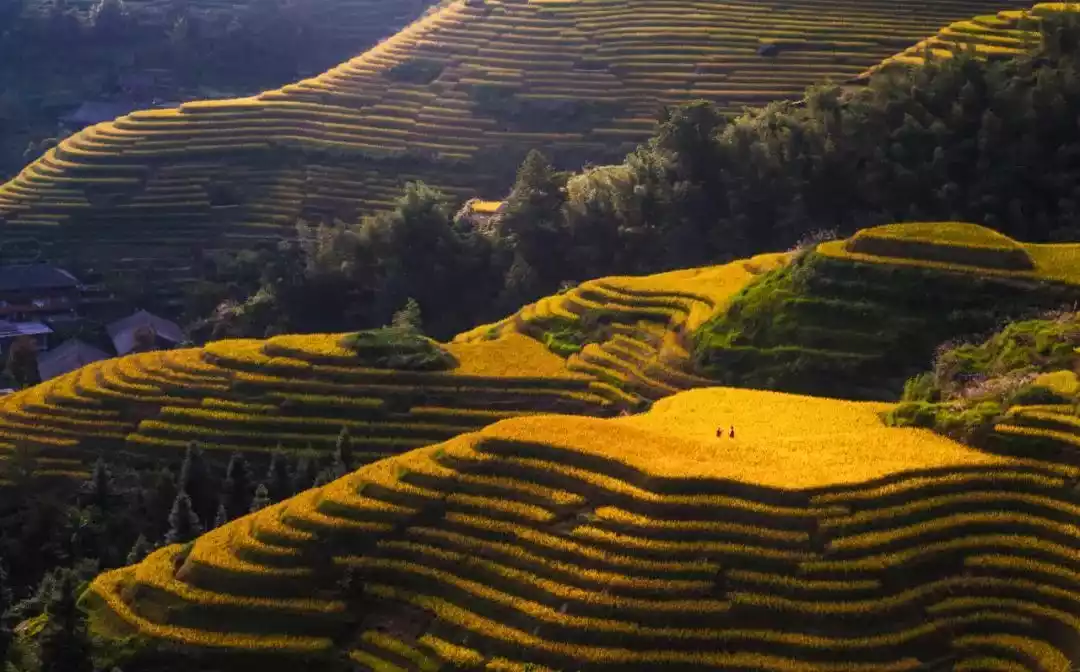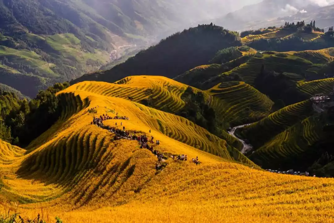 Over more than a thousand years, through the efforts of countless generations, the Longji Rice Terraces have reached perfection. Winding from the foot of the mountain all the way to the summit, they form a magnificent landscape where "small hills resemble snails, and large hills form towers," which is what we see today as the world's most magnificent terraced fields.