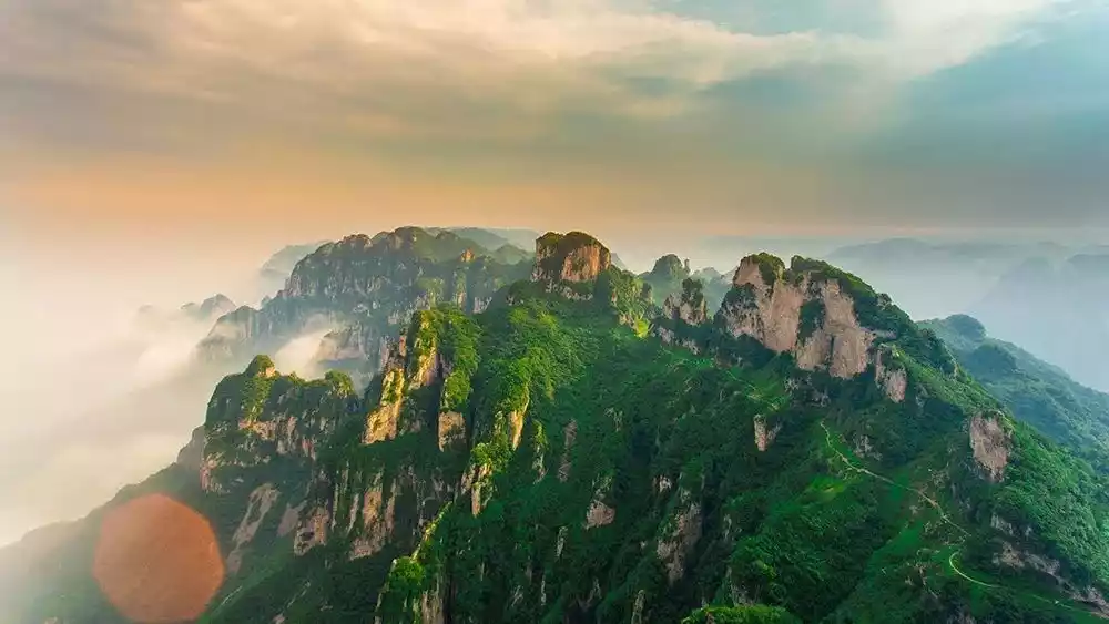 The southern Taihang Mountains are characterized by towering cliffs thousands of feet high, with peaks upon peaks, and a different scenery at every step. It offers both the majestic grandeur of the northern mountain ranges and the graceful beauty of the southern mountain ranges with their lush vegetation and overlapping layers of brocade.