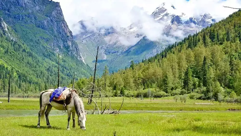 The snow-capped mountains have given birth to primeval forests that nestle around the mountains and rivers, and also nourish the fairy-like beauty in the isolated valleys.