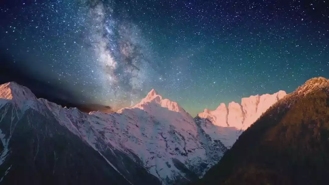 Some people say that Gongga Mountain spans the fairyland and the human world, "half in the sky and half on earth", towering majestically during the day and shining with stars at night.