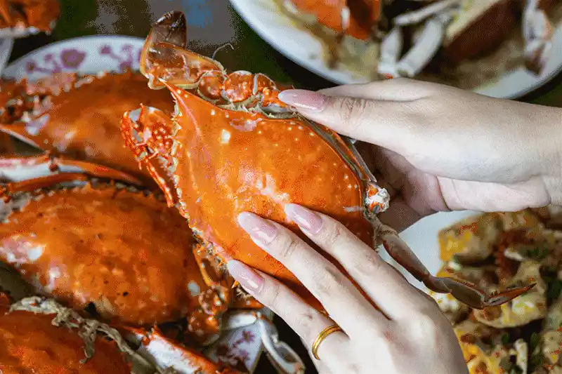 "When I lifted the crab shell, the snow-white crab meat and caramel-colored crab roe were immediately revealed. I couldn't wait to dip it into the special sauce made of minced garlic, soy sauce, and vinegar. With a fierce slurp, the crab roe splashed into my mouth, and the plump crab meat was firm, bouncy, and incredibly sweet. It was absolutely delicious!"