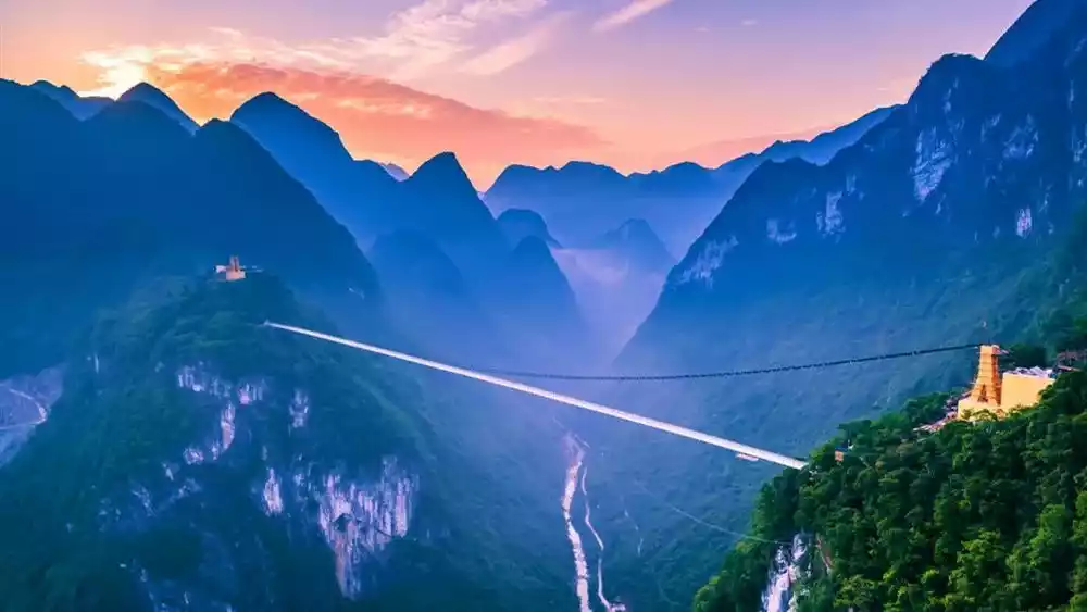 The Swallow's Nest Cave is mainly for viewing, with wonders such as Feiyun Waterfall, Swallow Rock Cave, and Swallow's Nest Cave. Standing on the 488m-high glass bridge and looking down, you feel like walking on the clouds!