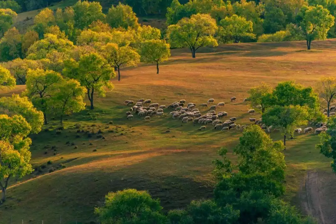 Nanjing is a small village with only a dozen households on the Ulan Butong grassland. The village is located in a U-shaped valley. Looking down from a high vantage point, you can see continuous wheat fields, flat pastures and sparse forests scattered around.
