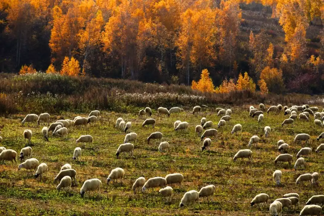 Pastures, Akita fields, rolling hills, and diverse tree species. Every autumn, the golden red leaves and bright yellow birch leaves all over the mountains blend together, plus herds of cattle and sheep. Perhaps this is what everyone sees as an autumn pastoral picture!