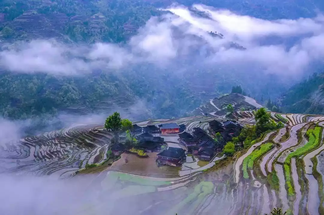 The Jiabang Rice Terraces, hidden in a corner of southeastern Guizhou for thousands of years, are like a long scroll with smooth and winding lines that seem to have no end. It is a world agricultural cultural heritage protection area, a Chinese wetland park, and one of the "most beautiful rice terraces in China."