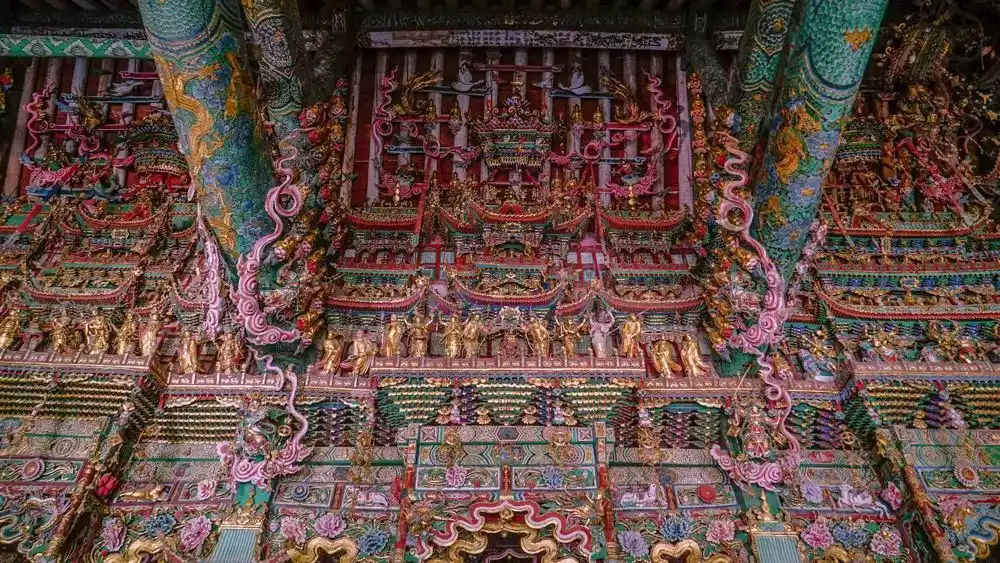 Follow the high-energy explanation of the big-name teacher all the way, push away the noise of history, gaze at the colorful sculptures in the hall and the wind-blown walls, and witness the ups and downs of the Fenshui Yellow River in southern Shanxi.