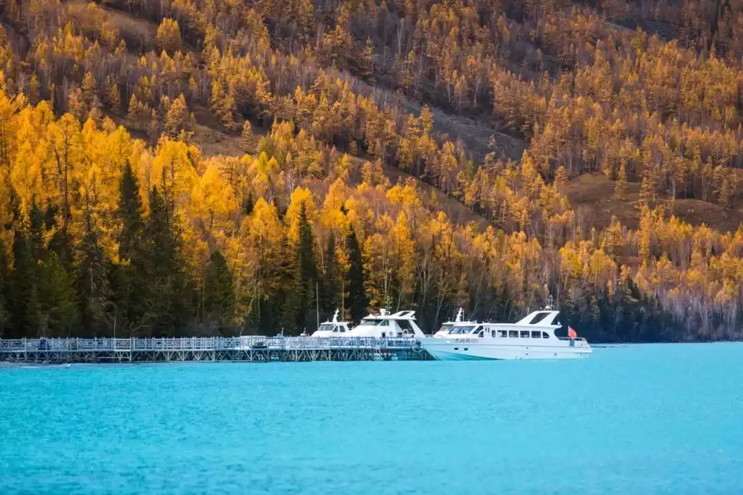 September is the most magnificent and colorful symphony in Xinjiang. In Kanas in autumn, everything can become a master of color matching. The birch and poplar trees turn from green to yellow and then to red in the autumn wind, dyeing the mountains red and golden.