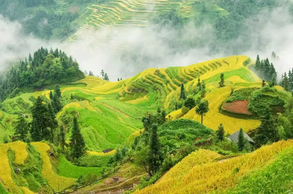 Especially during the autumn harvest season in September, this place is a photographer's paradise. Golden rice fields are everywhere, and people in unique costumes are harvesting in the fields, which is a unique experience.