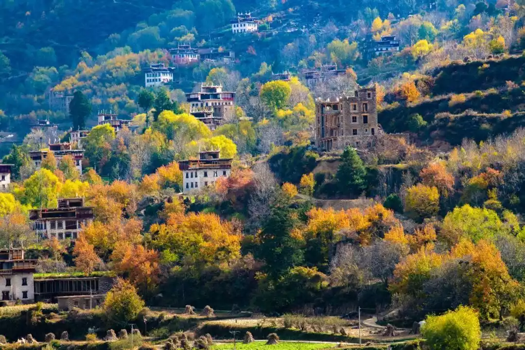 Every autumn, the mountains are covered with colorful forests, and the secluded Tibetan villages in the valleys are hidden among the golden forests. In the evening, curls of smoke rise from the valleys, and cattle and sheep graze leisurely... This is what a paradise is like.