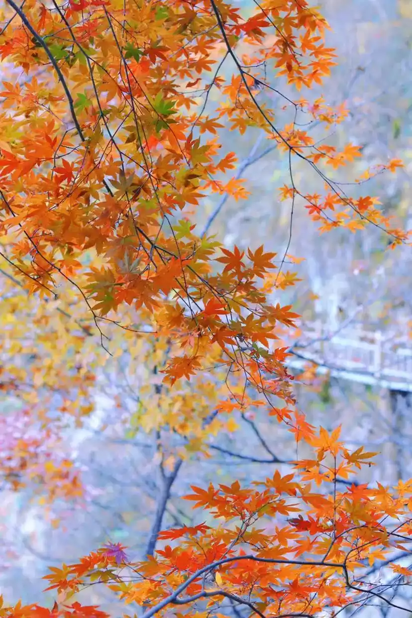 In autumn, the maple leaves here are like clouds, creating a world of crimson leaves. With thin clouds flying in the sky, mist drifting at the bottom of the ravine, and crimson leaves covering the mountains, this place has become a holy place for photography enthusiasts and a paradise for artists.