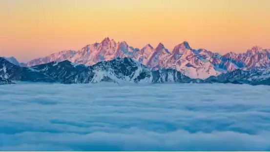 In the beautiful golden autumn season, there are not only lush forests, but also majestic snow-capped mountains.