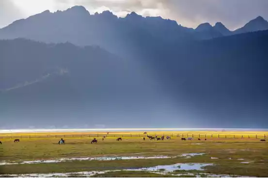 Traveling around Lugu Lake in an RV, we happened to record this beautiful transformation, facing the Goddess Gem Mountain, overlooking the lake; stepping onto the thousand-year-old meadow, following the waves.