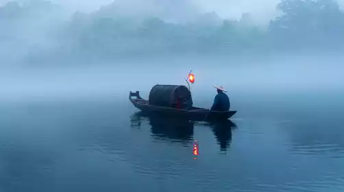 Wait for the sunset to dye the lake red, drink hot tea, ride on the swaying pig trough boat, and listen to the boatman singing.