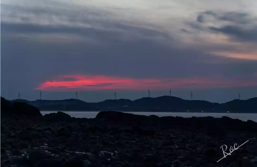 We passed through the ancient stone village and crossed one cross-sea bridge after another, chasing the sun. In the gentle glow of the setting sun, we finally arrived at this road that meandered into the sea like a cartoon.