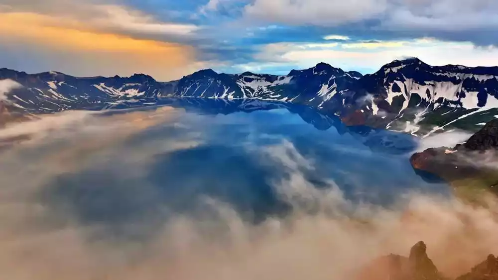 Changbai Mountain Tianchi lies quietly in the embrace of Changbai Peak 16. The clear and transparent sapphire lake surface comes into view, and the rocks at the mountain pass still bear traces of volcanic eruptions.