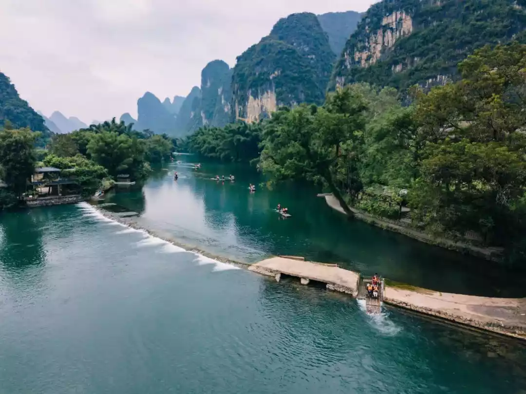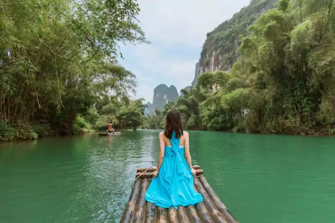 Go bamboo rafting to see both sides of the Yulong River, climb Xianggong Mountain, and appreciate the grandeur of the first bend of the Li River.