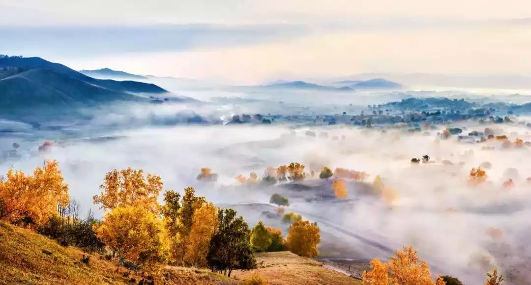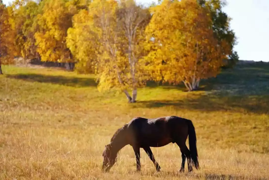Blue skies, grasslands, birch forests, larch trees, distant villages, melodious pastoral songs, and the smoke from cooking fires in the twilight. Just one glance at Wulan Butong in autumn is a scene you'll never forget.
