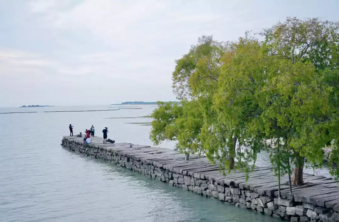 Navigate to "Peace Pier" and drive all the way to chase the sun. In the gentle glow of the setting sun, you will be surprised to find a road that winds into the sea like a cartoon!