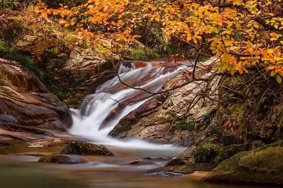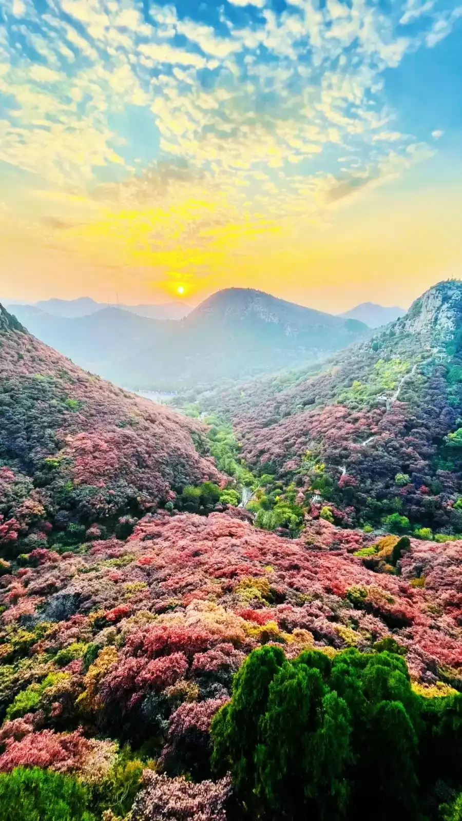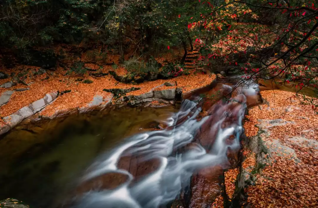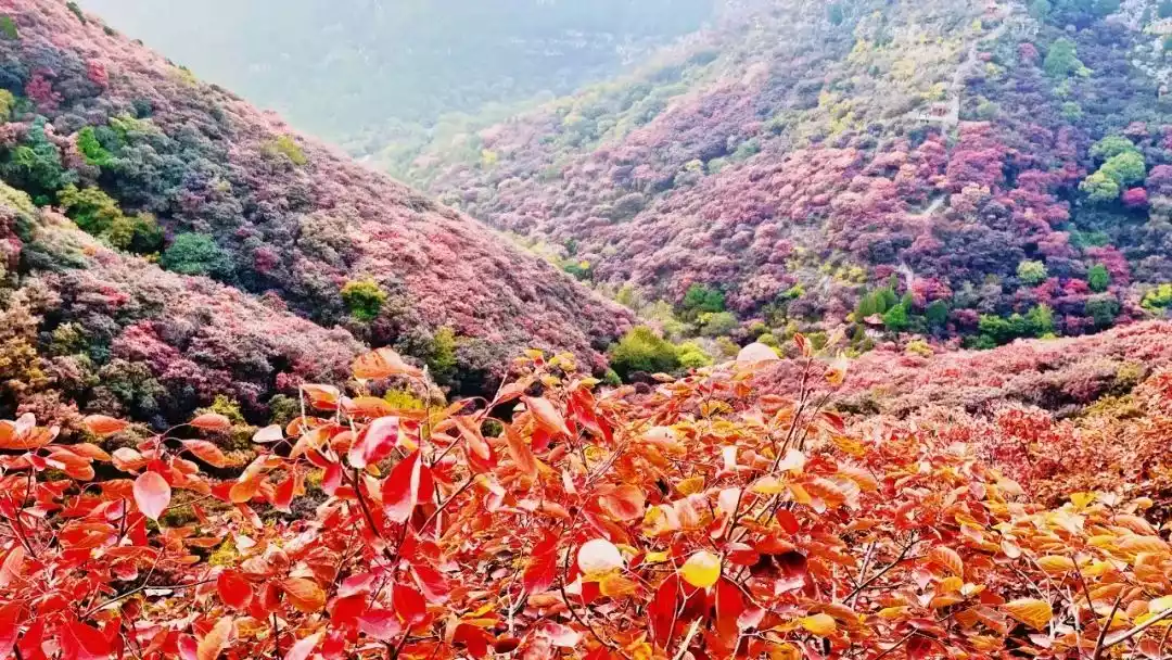 Here, the mountains are high and the forests are dense. Within the towering peaks and steep ridges, a myriad of trees and shrubs—oaks, maples, oaks, locusts, ginkgo trees—grow unrestrained, each with its own unique beauty. After the autumn frost, each tree leads the way, and all the others echo in its wake, transforming the mountains and ravines into a dazzling wonderland of vibrant colors.