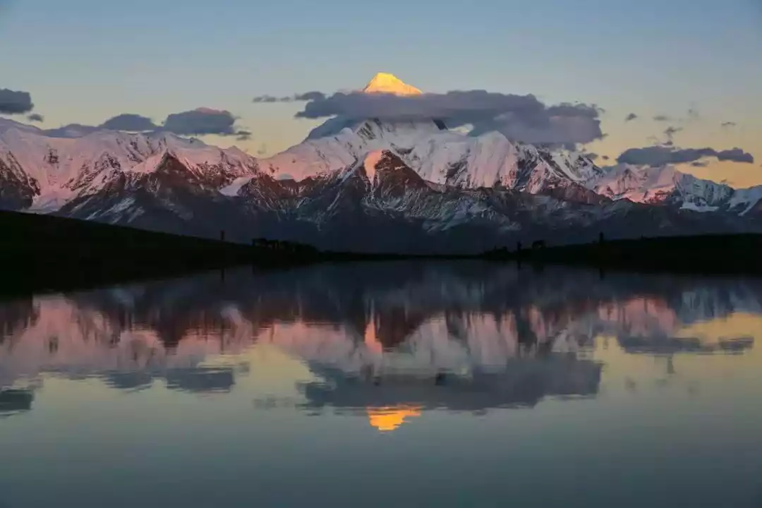 Lenggacuo is one of the closest and most centrally located alpine lakes to the main peak of Gongga. The lake is 4,600 meters above sea level, 23 kilometers away from the main peak. This gives Lenggacuo an excellent vantage point and view, forming a straight line with Nama Peak and the main peak of Gongga.