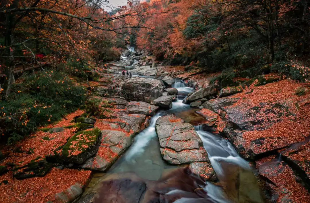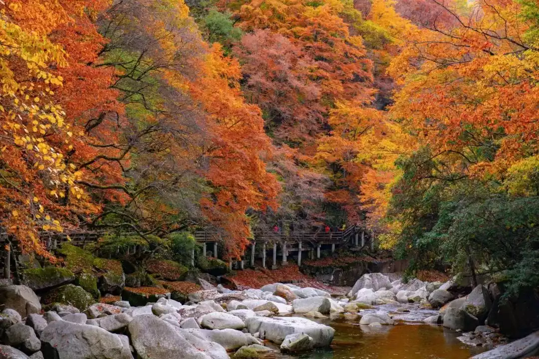 This place is known as "the longest natural red carpet in Asia". The area where red leaves can be viewed is 680 square kilometers, and more than 40 different species of trees form a colorful world.