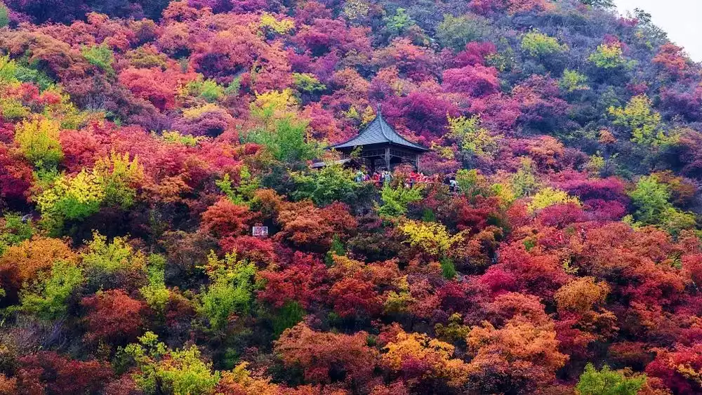Located in western Beijing, Shuanglong Gorge is known as the "Little Jiuzhaigou of Western Beijing." In autumn, it's like a palette of paint has been overturned, transforming the already beautiful valley into an even more dazzling and colorful spectacle.