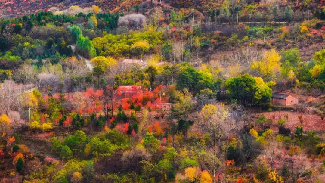 Looking from the mountains, the autumn colors like terraced fields spread to the foot of the mountain, blending with the various buildings in Bairui Valley. It is quite interesting to stop and watch.