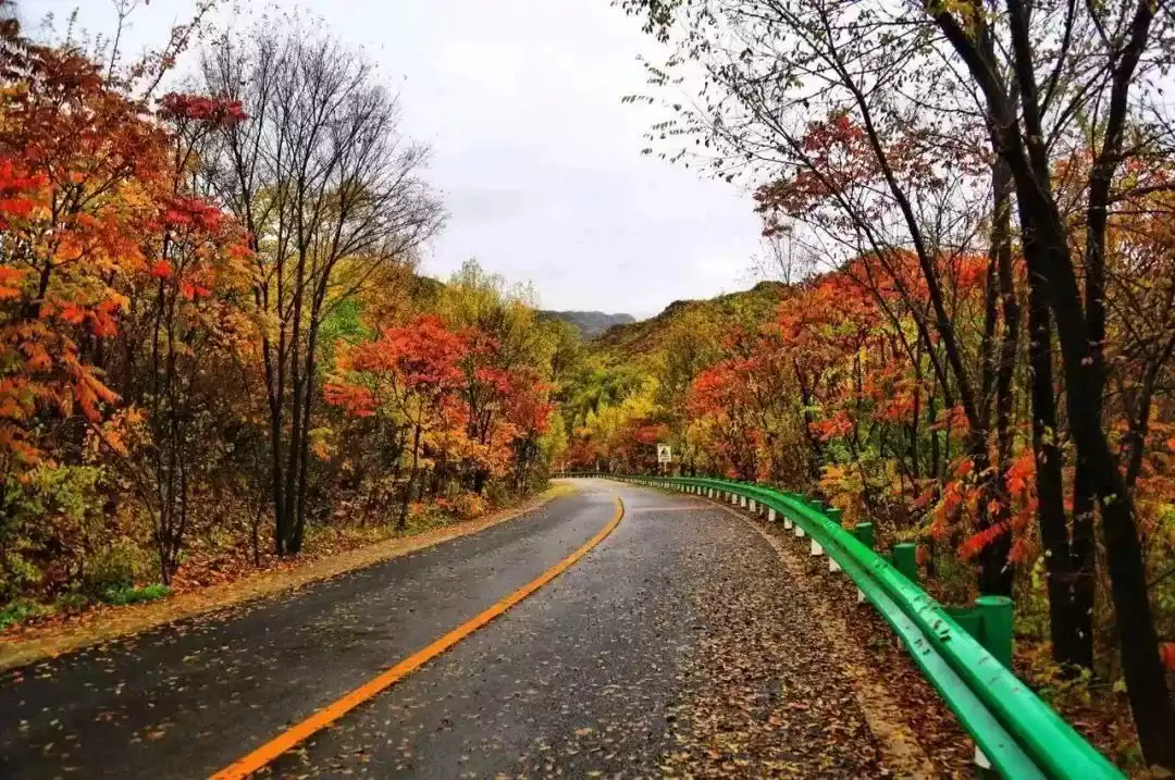 The mountain road above is covered with red leaves on both sides. Standing in it, it feels like wandering in an autumn wonderland in a fairy tale, and it is difficult to distinguish between reality and dreams.