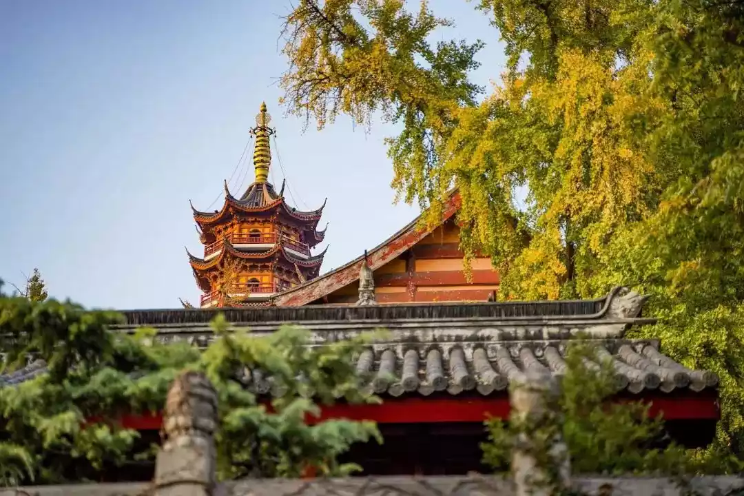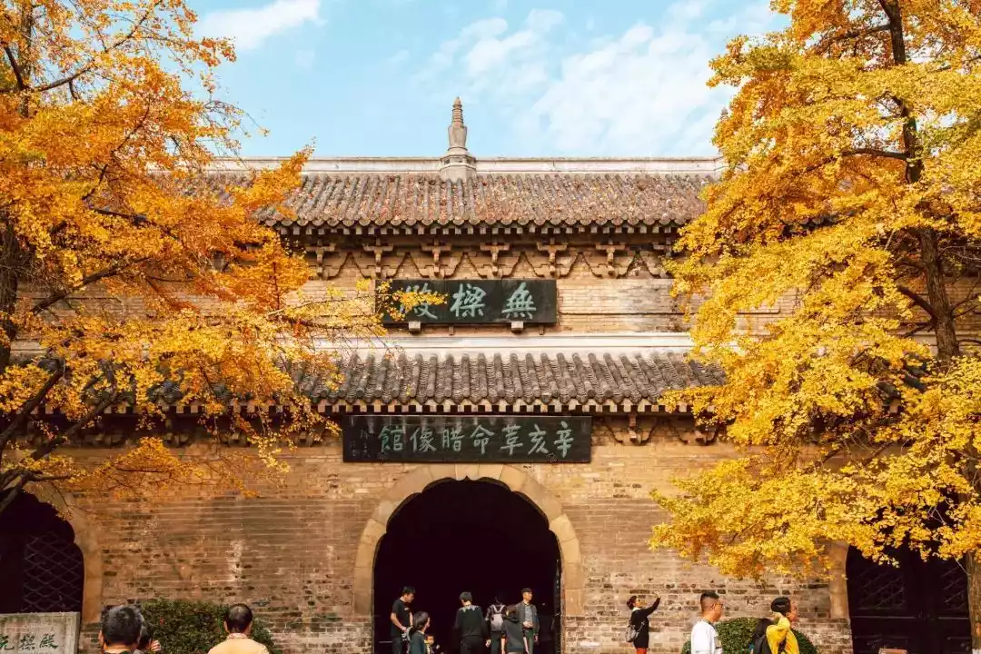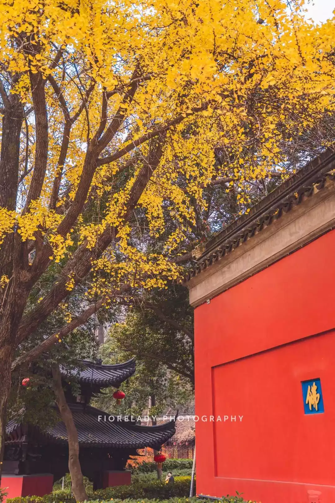 There are two towering old ginkgo trees in front of the main hall, which create a scene of "the whole city is covered with golden armor" in autumn. With the red-walled and gray-tiled buildings as the background, the autumn and Zen atmosphere can be given full marks!