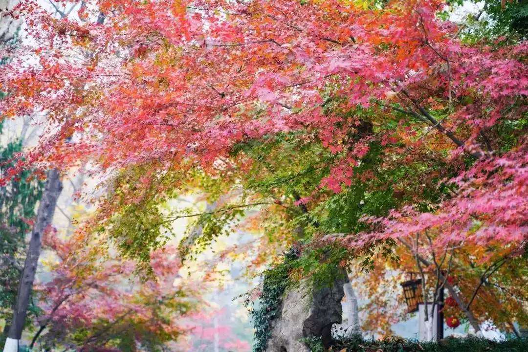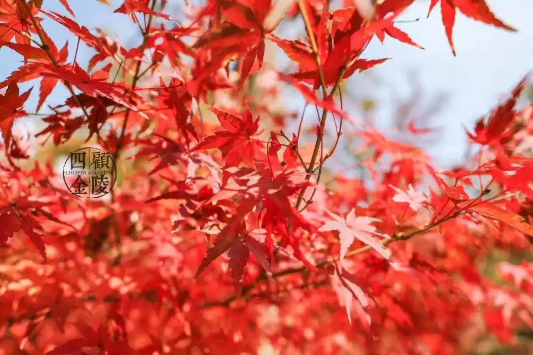 Qixia Mountain, with its vibrant red maple trees, is known as one of the "Four Great Places for Viewing Maple Leaves in China" along with Beijing's Xiangshan Mountain, Suzhou's Tianping Mountain, and Changsha's Yuelu Mountain. As autumn deepens, the leaves on the mountain become redder, like fiery clouds floating on the top of the mountain, intense and bright.