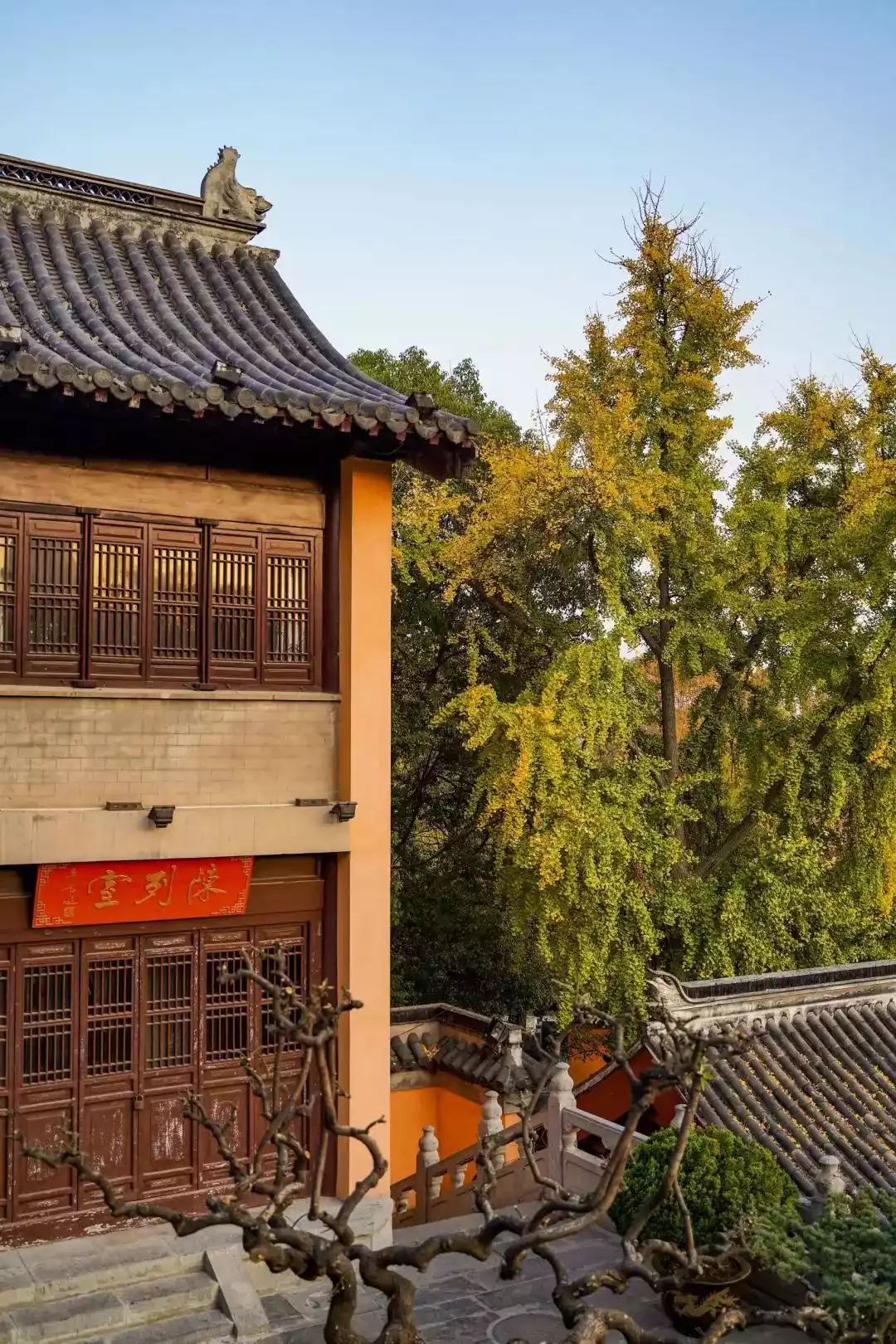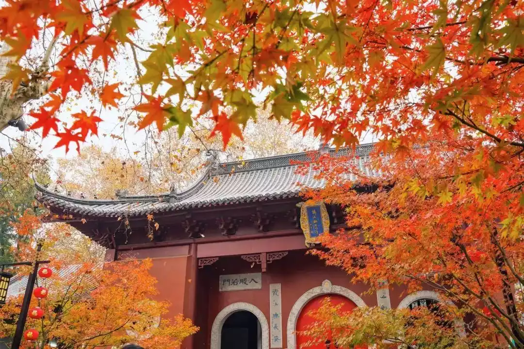 "A winding path leads to a secluded place, where the Zen room is surrounded by flowers and trees." The two most popular labels of Linggu Temple are "plain noodles" and "fireflies." Fireflies are only seen in summer, but plain noodles and autumn colors are worth pursuing.