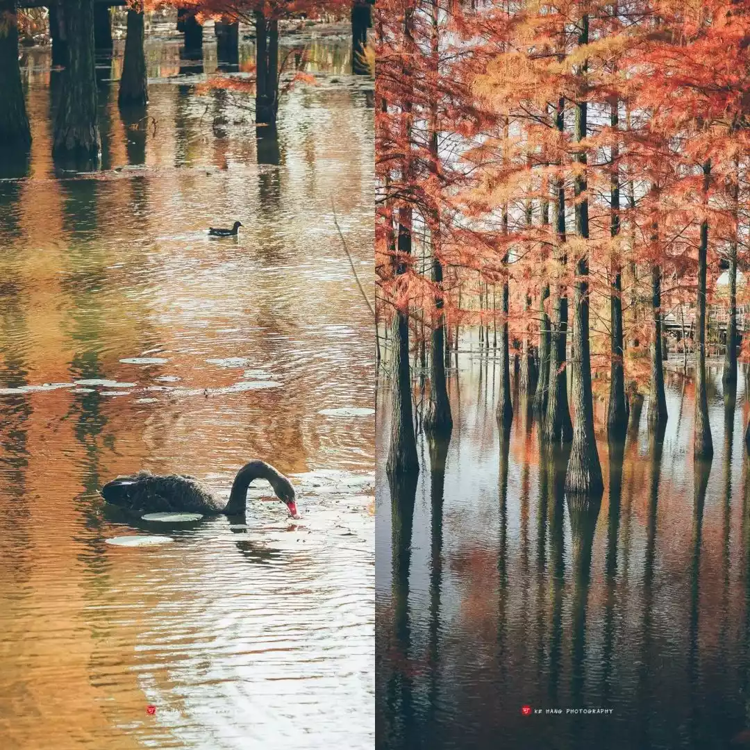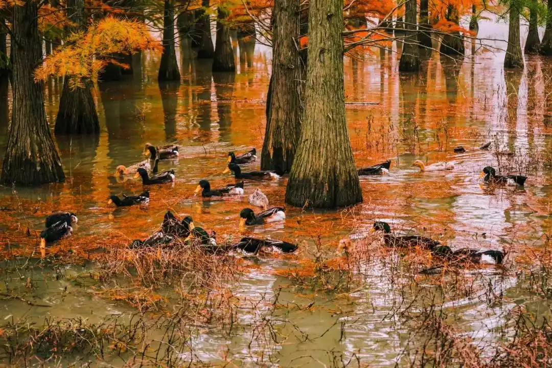It is said that this place is the "Little Jiuzhaigou" of Nanjing. The most beautiful scenery is in the early morning. The pond cypress is matched with the morning mist, interacting perfectly with the light and shadow. Occasionally, ducks swim through it, making it like a paradise.