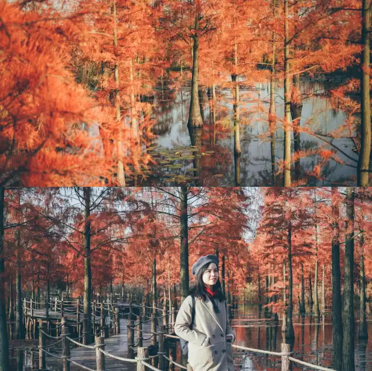 Metasequoia Lake Wetland Park is the largest Metasequoia forest area in East China. There are more than 50,000 old Metasequoia and young Metasequoia trees growing on the lake. October to December every year is the best viewing season for Metasequoia Lake.