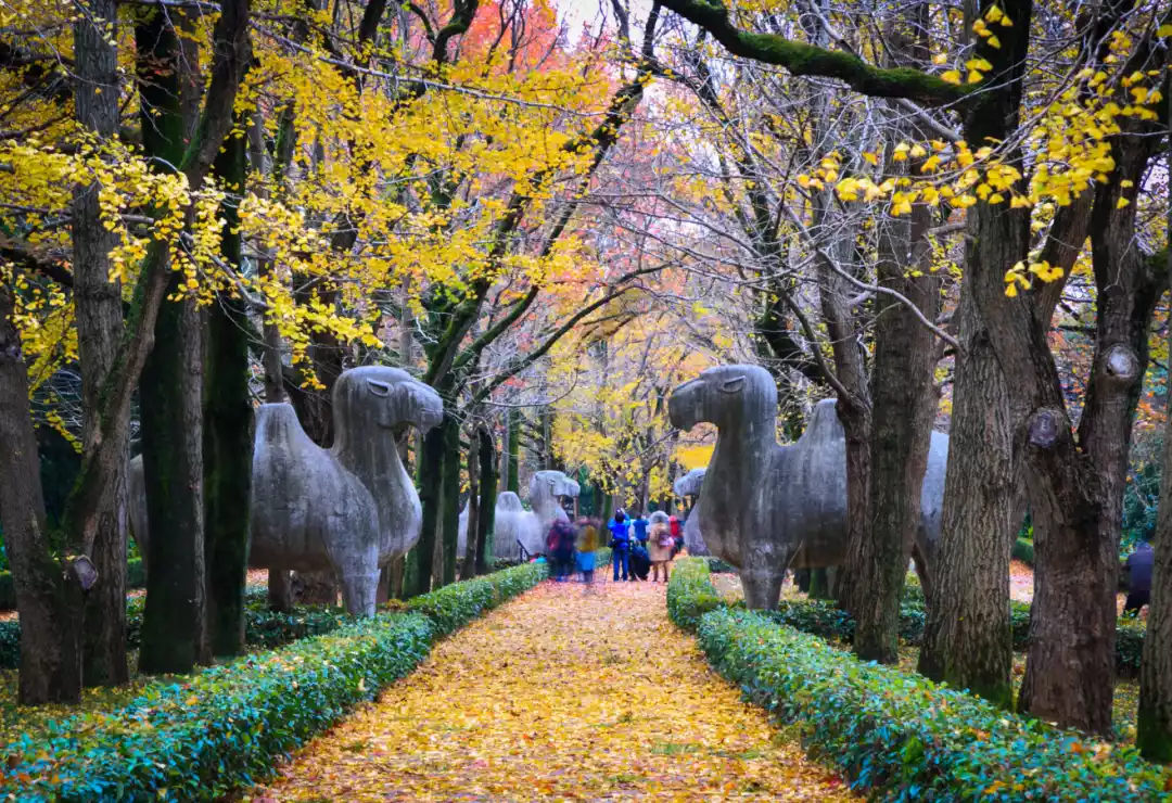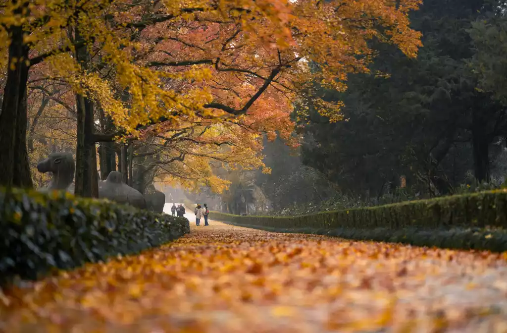 And what's the most striking pearl in Nanjing's autumn scenery? It has to be the Ming Xiaoling Mausoleum. The Stone Elephant Road at the Ming Xiaoling Mausoleum is Nanjing's most popular check-in spot in autumn.