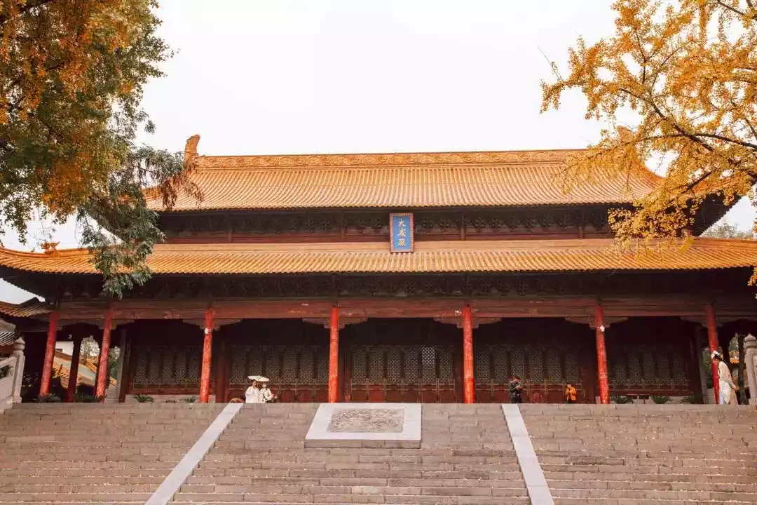 With its palaces, terraces, pavilions, red pillars and carved rafters, Chaotian Palace has always been one of the important places for enjoying autumn in Jinling. Ginkgo leaves fall, and the ground is covered with golden color. You can hear the sound of ginkgo leaves falling quietly, and it seems as if you are dreaming of returning to the Ming Dynasty in the next second.