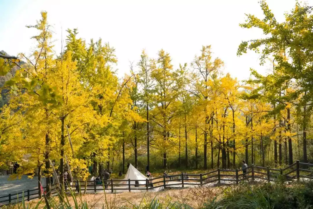 Strong and upright ginkgo trees stand on both sides of the road, forming a long golden corridor. The 12.5-kilometer corridor is home to 30,000 ginkgo trees, more than 2,700 of which are over 100 years old.