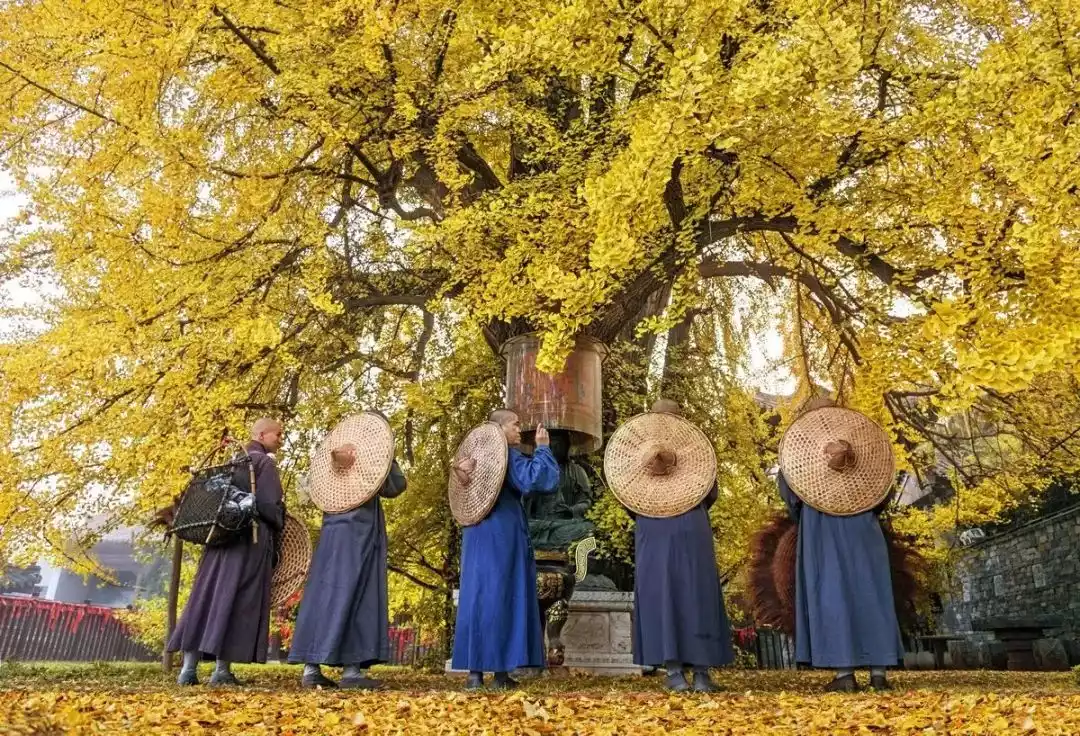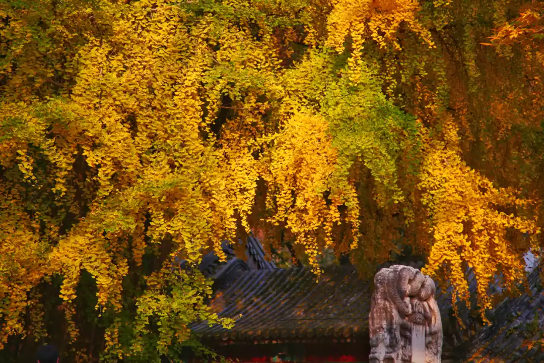 In the season of melodious ancient music, fragrant tea and falling golden ginkgo leaves, this "Emperor Tree" in Tanzhe Temple in autumn has a history of more than 1,300 years.