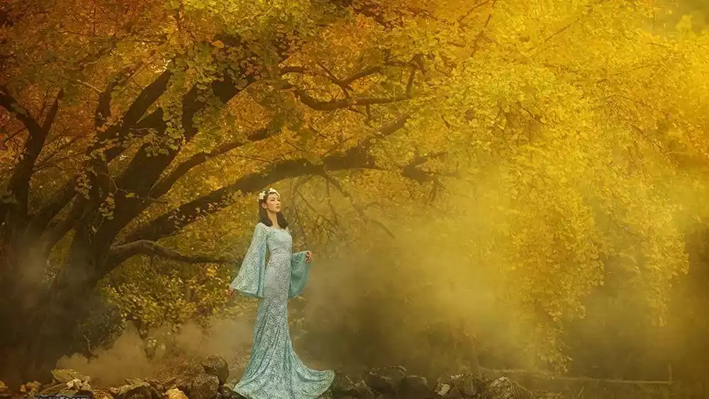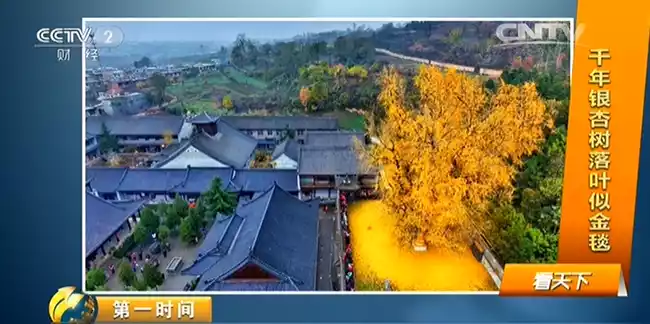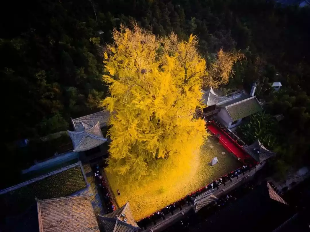 In the golden autumn of October, the 800-li Zhongnan Mountain is covered with colorful forests and is full of splendor. In the ancient Guanyin Zen Temple at the foot of Fenghuangling in Zhongnan Mountain, the thousand-year-old tree known as the "most beautiful ginkgo" has ushered in the most splendid moment of the year.