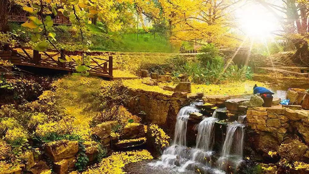 Every October, more than one million ginkgo trees turn yellow and their leaves drift down the paths, streams, and rooftops, instantly turning the area into a golden ocean.
