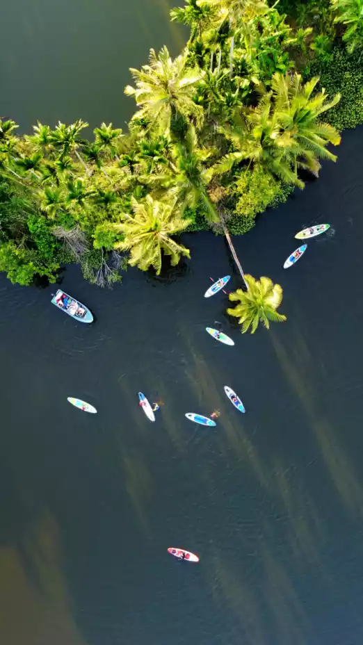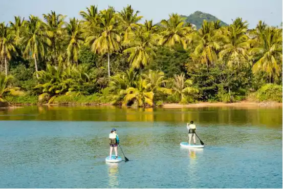 Paddleboarding on the Jialang River allows you to paddleboard in the river, with coconut trees and betel nut trees on both sides complementing each other, creating a unique scenery.