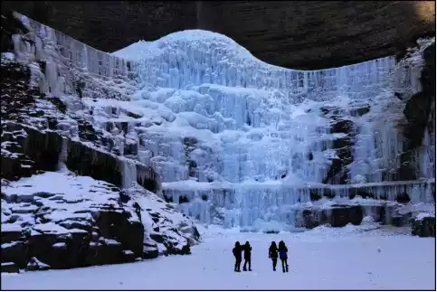 In Taihang Mountains, the clear springs and waterfalls that flow along the rock walls in summer freeze into icicles, ice flowers, ice waterfalls, ice curtains, ice mushrooms, and ice veils in winter. Under the sunlight, they look like a dream, just like a real-life version of Frozen.