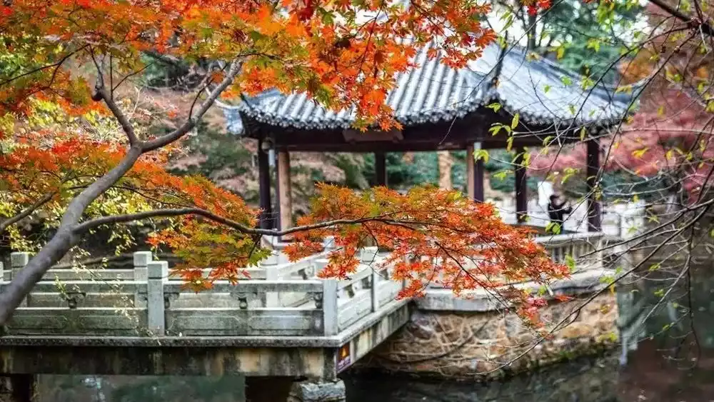 Yushan is ablaze with colors in autumn. The buildings in Fangta Garden are all modeled after the Song Dynasty style, which is gorgeous and majestic. They also adopt the winding and changing style of Jiangnan gardens, with curved bridges, pavilions, corridors, waterside terraces, rocks, flowers and trees, which complement each other.